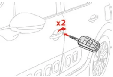 Beim zweiten Manöver signalisiert das Aufleuchten der Fahrtrichtungszeiger für die Dauer einiger Sekunden bei den Versionen ohne Alarmanlage die Sicherheitsverriegelung des Fahrzeugs.
