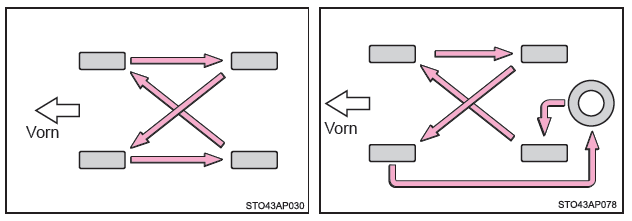 Setzen Sie die Reifen in der angegebenen Reihenfolge um.